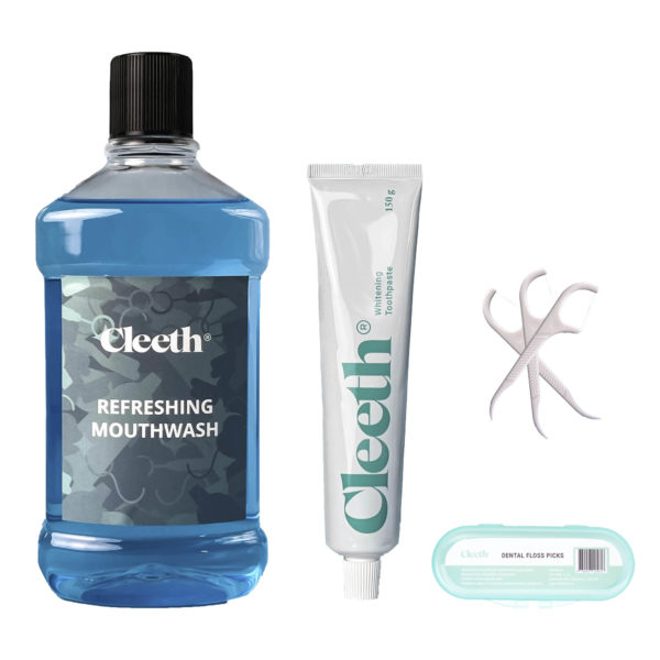 Svěřte se do rukou značky Cleeth a vyzkoušejte náš exkluzivní Zkušební balíček Cleeth. Tento balíček obsahuje 1 produkt každého druhu vyjma zubního kartáčku. Ujistěte se, že produkty Cleeth je to, co potřebujete.